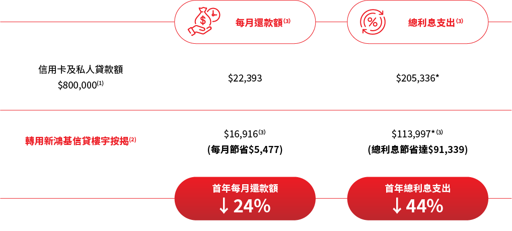 ^ 卡數連未償還私人貸款結餘 * 以首12個月計算
